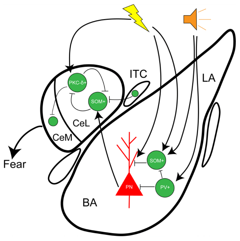 - Krabbe S, Gründemann J, Lüthi A. Amygdala inhibitory circuits regulate associative fear conditioning. Biol Psychiatry. 2018;83(10):800-809. Available from: https://doi.org/10.1016/j.biopsych.2017.10.006
