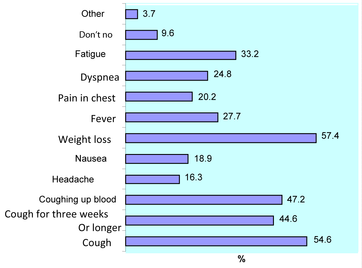 Figure 2: Manifestations of TB, % (all symptoms are given).