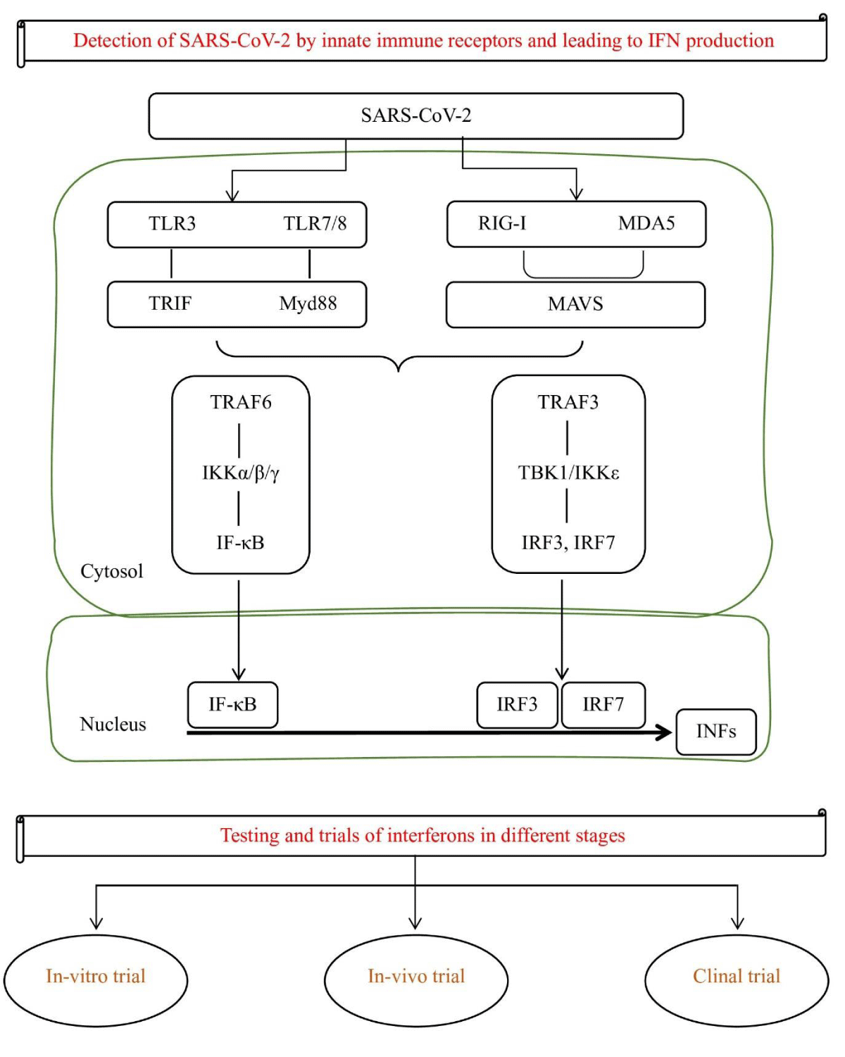 Figure 2: Presentation of SARS-Cov-2 leads to IFN production and different stages of clinical trials.